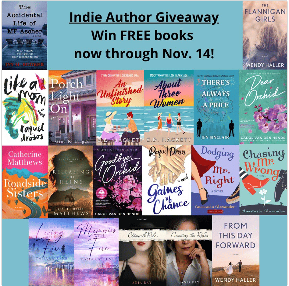 Hello Reader, Welcome to Edy's Writing World! If this is your first newsletter from me, welcome! If this is one of many, it's nice to have you back, my friend. First of all, Happy November 1st! We are officially entering the holiday season, and I have decided to do things a little differently today. Hang in there as I get my bearings. I talk a lot about indie publishing and how it's like a pendulum. Every now and then you think you know what's going on, and something in the industry changes, and I'm forced to pivot and swing. So here I am, swinging. I love sending curated newsletters with all my news, but I guess I'll try a different approach. At least for today. And I'd love to know what you think of this basic email-y email. Anyway, I have big news to share with you today! Myself and eleven other authors have teamed up for a fun giveaway. Here is how it works: 11 Writers and 20 books and YOU pick the authors and books you are interested in. To join that specific giveaway, you will be prompted to sign up for that author's newsletter. Good luck! In other exciting news, I finished another draft (ha! I lost count) of the third and final Block Island story, and I'm getting it prepped for beta readers. If you'd like to read for me, send me a quick email and I'll pass it along when it is ready. This story revolves around the two sisters, Jackie and Joanie, and their mother. One is struggling as a new mom, the other is tired of putting her life on hold for everyone else's bigger problems, and their mother is learning to let go and love unconditionally. Like vinegar and water, there is much tension, and each woman has a mountain to climb. I look forward to gathering your feedback! Before I leave you, I hope you have a beautiful weekend. As we quickly approach the holiday season, when life flies at supersonic speed, I want you to keep smiling, keep breathing, and enjoy your friends and family. I hope you have a great book to read at ALL times. If you've read an amazing story, please pass it along to me, as I love to read new authors. And last but not least... If we met at the Scarecrow Festival, you signed up for a free copy of The Block Island Saga. The winner is....(drumroll, please)...Becca! Becca, check you're email for more information on how to download your books. Keep reading, everyone! Edy.